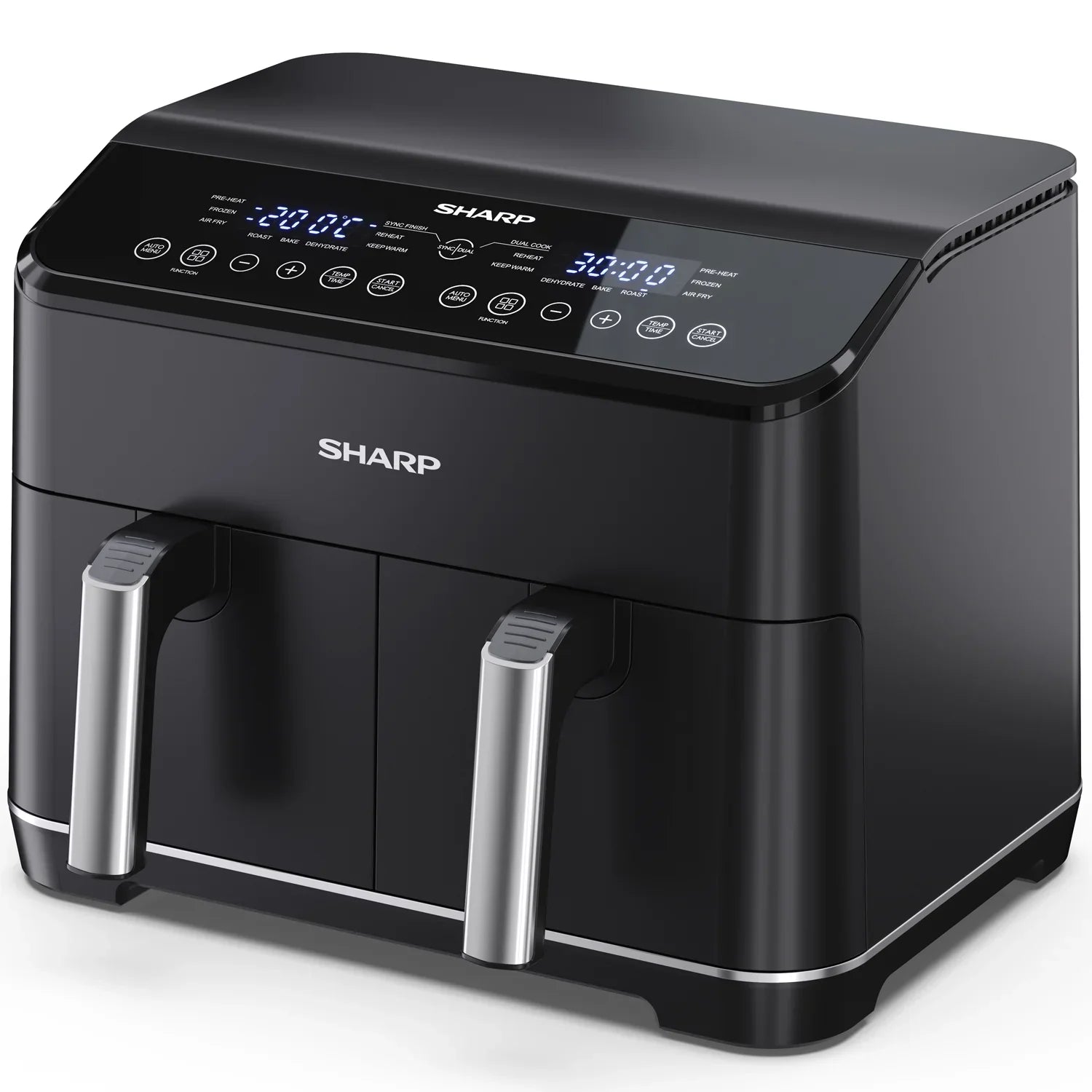 Upptäck Airfryer Dubbel 2x4L – AF-GD82AE-B, en praktisk luftfritös som erbjuder två separata lådor med vardera 4 liter kapacitet.