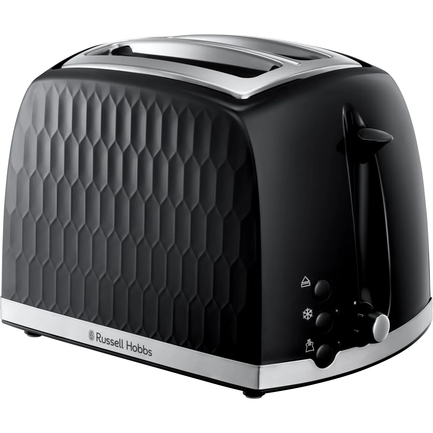 Honeycomb-brödrosten ger köket en modern touch med sin unika texturerade yta i plast och kromaccenter. Den rostar två brödskivor åt gången och passar perfekt i både små och större kök.