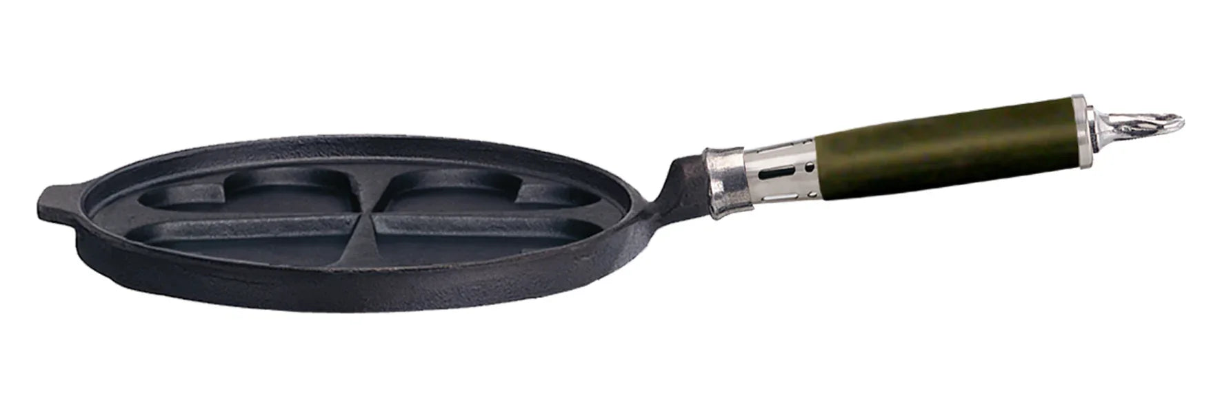 Plättpanna i gjutjärn Ø25 cm – för 4 hjärtformade plättar med silikonhandtag