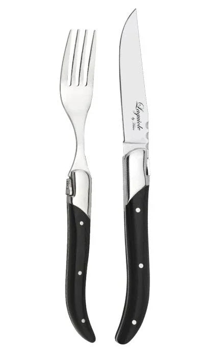 Gör grill- och stekupplevelsen till något alldeles extra med setet 30-LG0020KF från Laguiole By Hâws – ett exklusivt bestickset bestående av 12 delar: 6 stekknivar och 6 stekgafflar med svart trähandtag och stålblad.