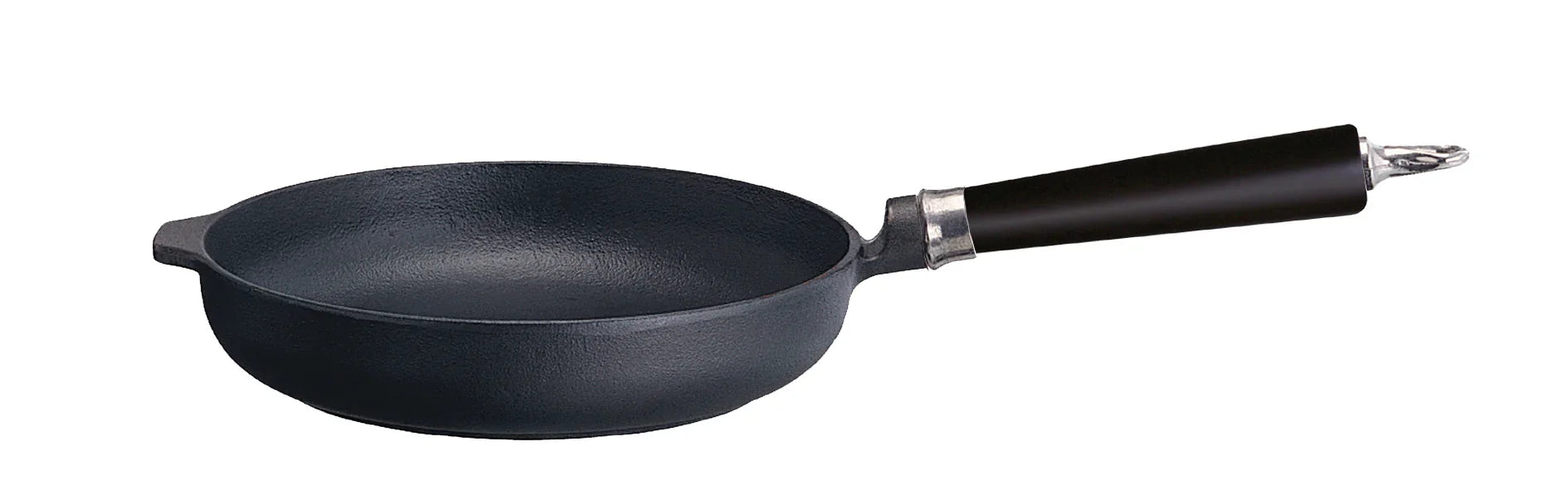 En stilren stekpanna på Ø24 cm med rund kant – ett mångsidigt köksredskap som passar för både vardagliga rätter och festmåltider. Pannan är tillverkad i gjutjärn som ger jämn värmefördelning och lång hållbarhet, vilket säkerställer en fin stekyta varje gång. Handtaget i svartlaserat bokträ ger ett bekvämt grepp och en elegant, tidlös design.
